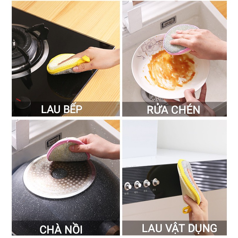 Miếng rửa chén HÌNH TRÒN 2 MẶT nhám và xốp rửa chén xoong nồi nhanh chống