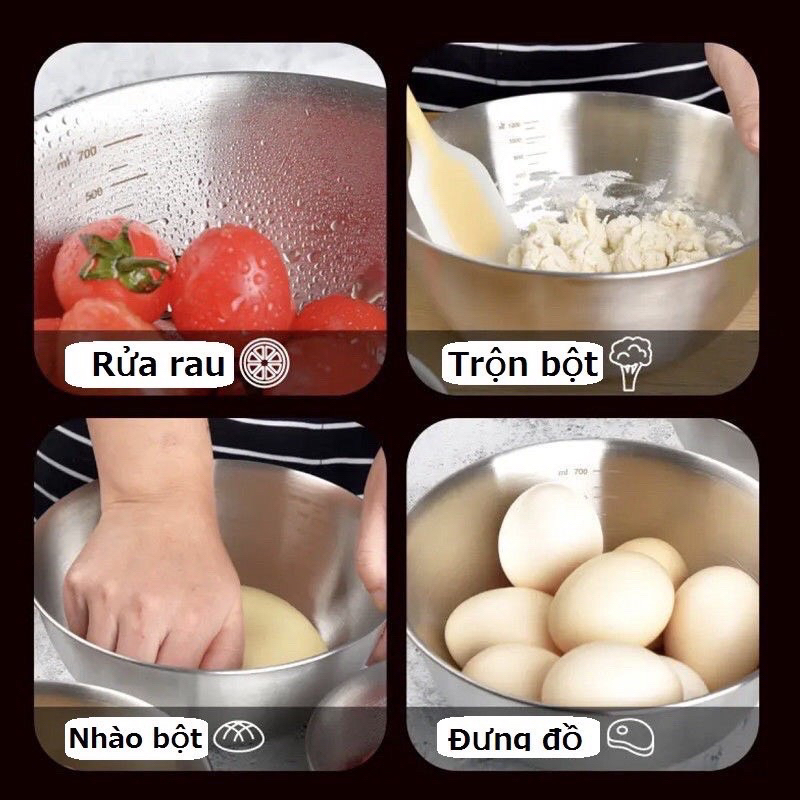 Đánh trứng, trộn salad, làm bánh 3 em này cân tất. Chất liệu Inox bền vĩnh viễn 💯.