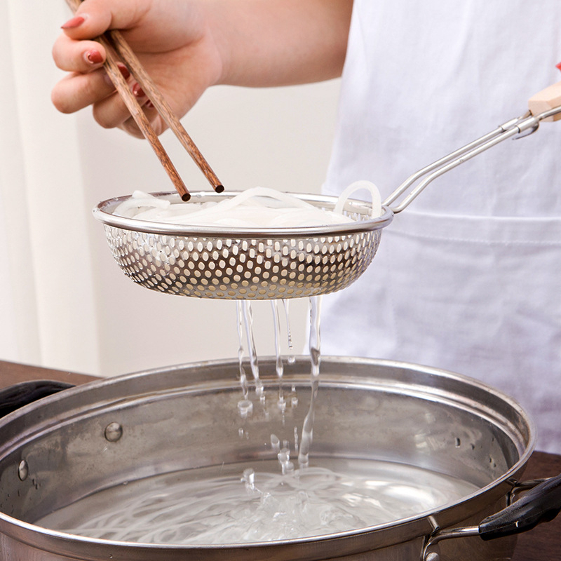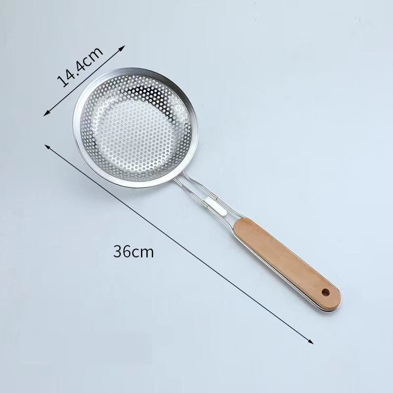 Vợt Tròn Vớt Thức Ăn (V31), Vợt Inox Ăn Lẩu Tiện Lợi. Chao Thức Ăn Cán Gỗ Bền Đẹp An Toàn