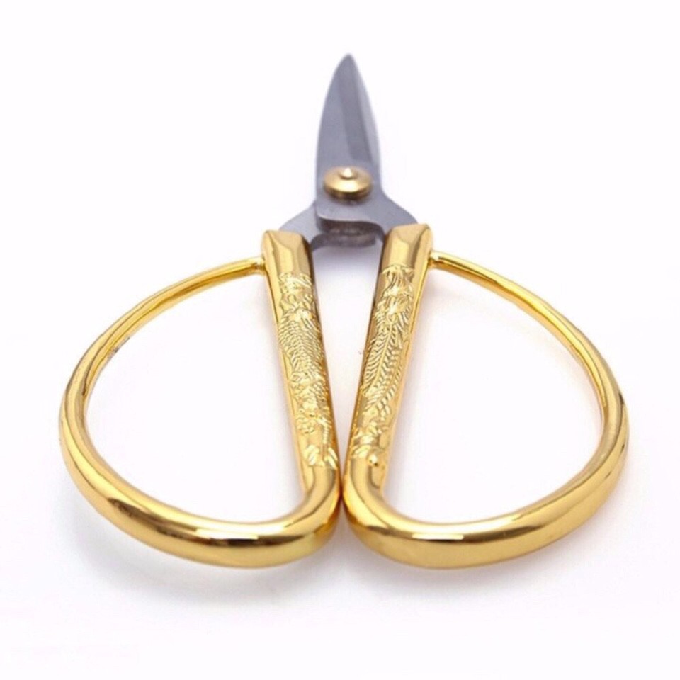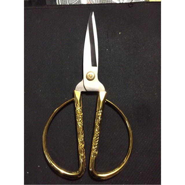 Kéo vàng rồng phụng siêu bền siêu bén thiết kế nổi bật với phần tay cầm mạ đồng sang trọng, khắc hình rồng và phụng tinh xảo, độc đáo.