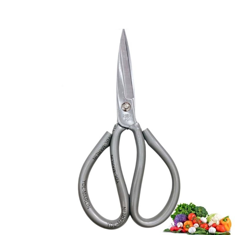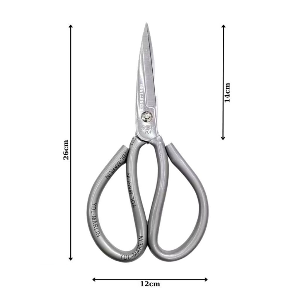 Kéo Cắt Nhà Bếp, Vải, Bao Bì Chống Gỉ LOẠI TO MÀU GHI– Lưỡi Thép Sắc Bén, Tay Cầm Bọc Cao Su Chống Trượt