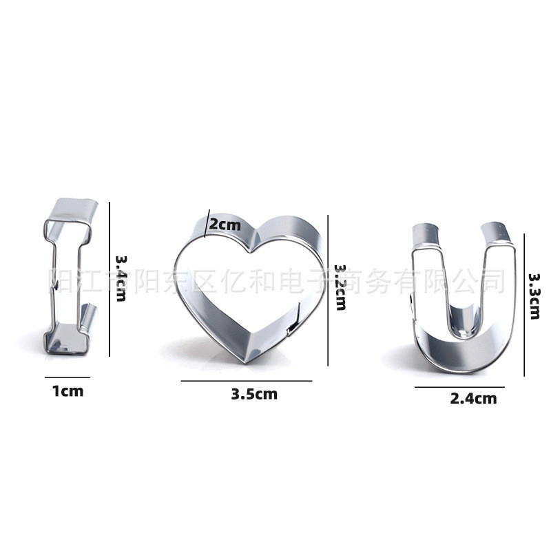 Khuôn tạo hình chữ I Love You đẹp mắt, thiết kế cạnh sắc giúp nhấn dễ dàng mọi loại nguyên liệu, từ bột bánh quy cho đến socola, fondant,..Thông tin chi tiết: