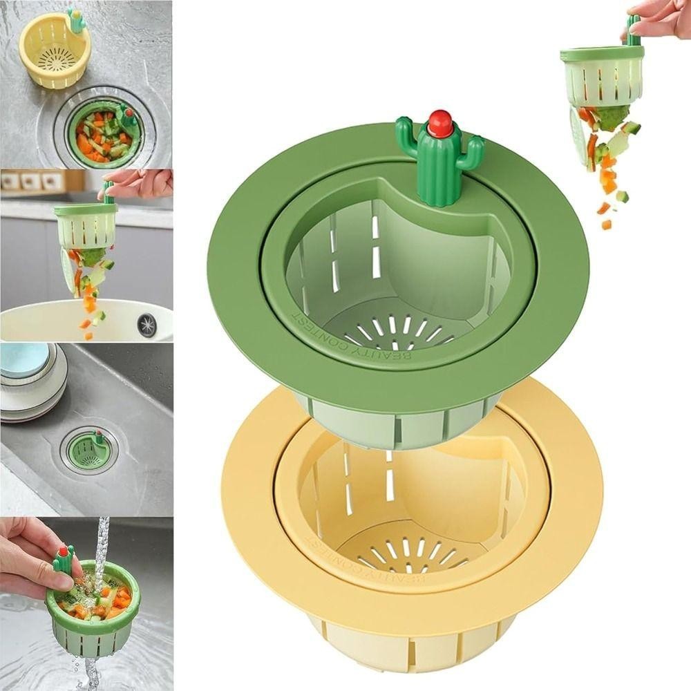 Lưới Lọc Rác Bồn Rửa Bát Nhấn Đổ Rác Tự Động Không Ghê Tay, Giỏ Lọc Rác Bồn Rửa Chén Chống Tắc Nghẽn Hình Xương Rồng Rổ Lọc Thức Ăn Thừa