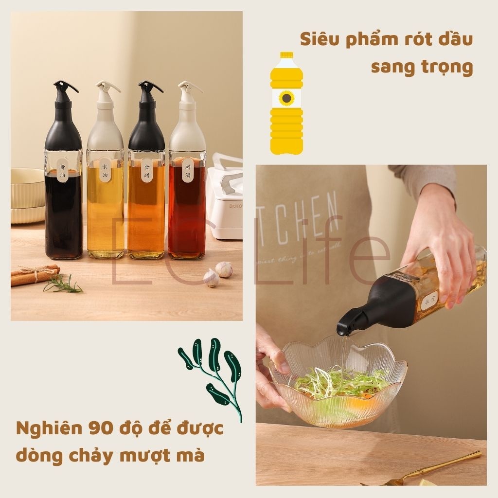 Chai thủy tinh đựng dầu ăn chiết rót dầu 500ml, Bình thủy tinh loại cao đựng dầu ăn chiết rót dầu