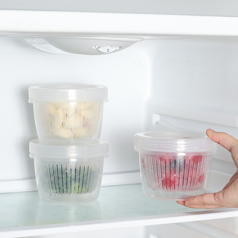[Hộp nhựa tròn có rãnh thoát nước 2 lớp, có nắp đậy kín] [Hộp bảo quản thực phẩm] [Hộp đựng thực phẩm bằng nhựa, cho hành gừng tỏi] [Hộp đựng thực phẩm trong nhà bếp cho hành gừng tỏi]