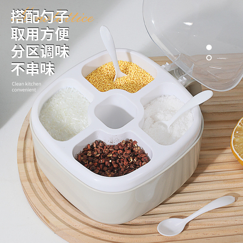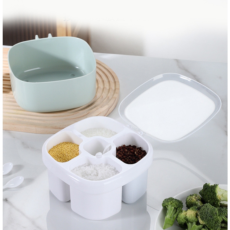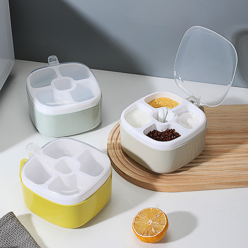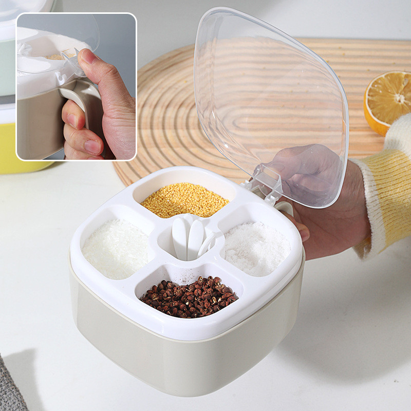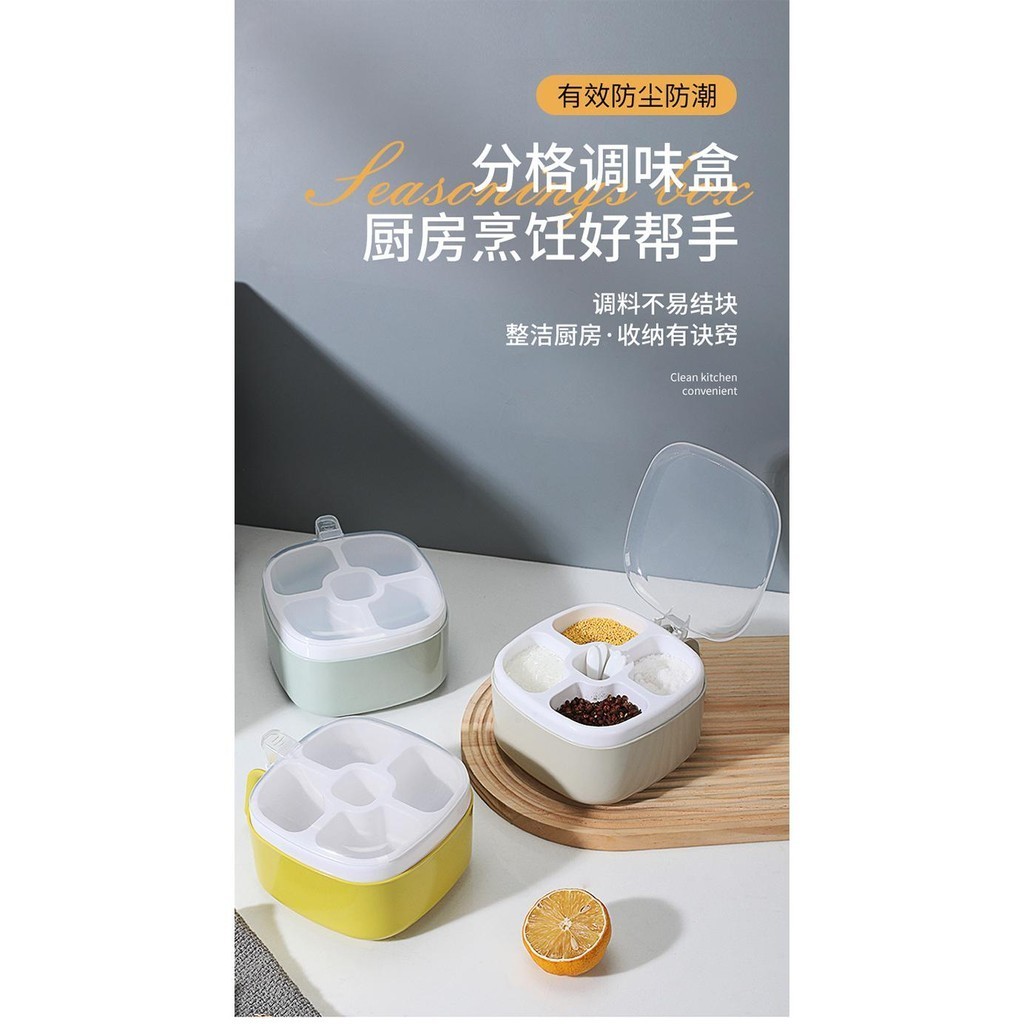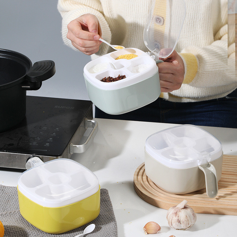 Hộp Gia Vị 4 Ngăn 2 lớp (4N2) có tay cầm tiện lợi kèm muỗng