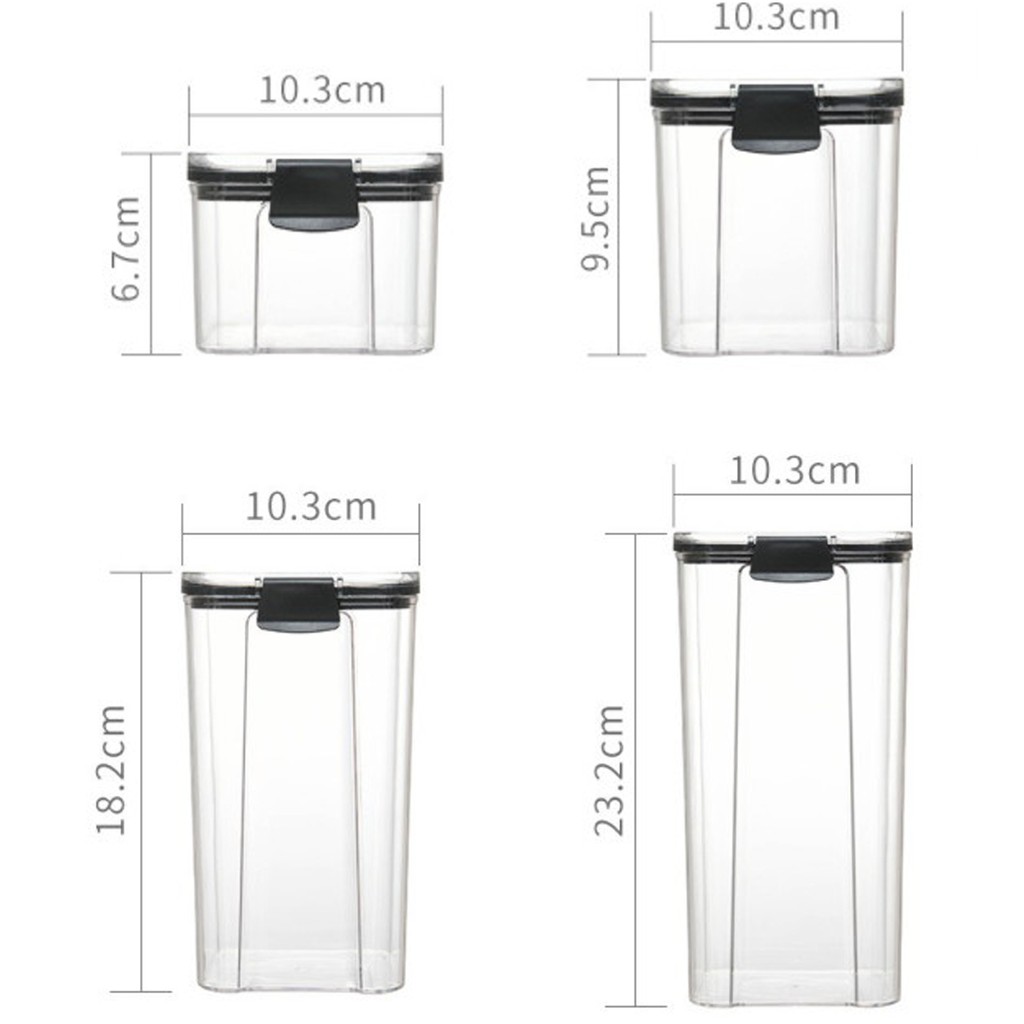 — Gồm 4 kích thước khác nhau, giúp bạn dễ dàng lựa chọn hủ đựng phù hợp với nhu cầu của bạn