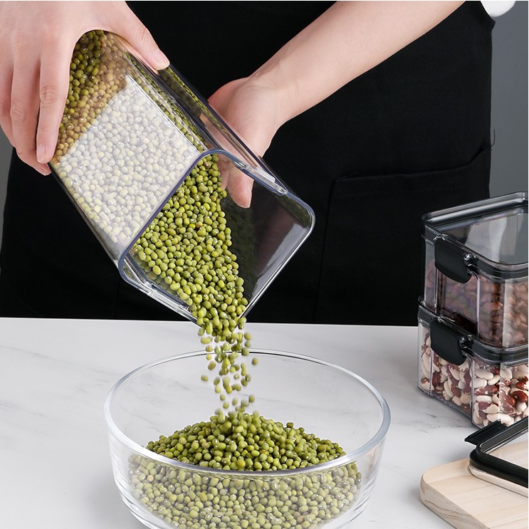 Hộp nhựa đựng thực phẩm khô, hộp nhựa đựng ngũ cốc trong suốt nắp kín chống ẩm