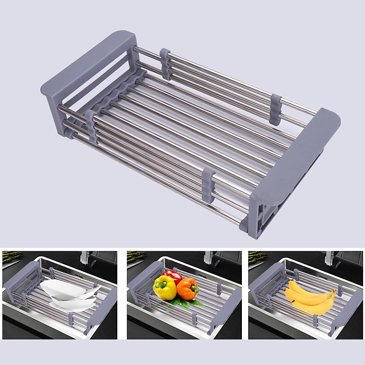 Giá Khay Inox Để Chậu Bồn Rửa chén (Điểu Chỉnh Kích Thước) – Rổ Gác Bồn INOX Rửa Chén Đa Năng – Rổ Đựng Hoa Quả, Ch