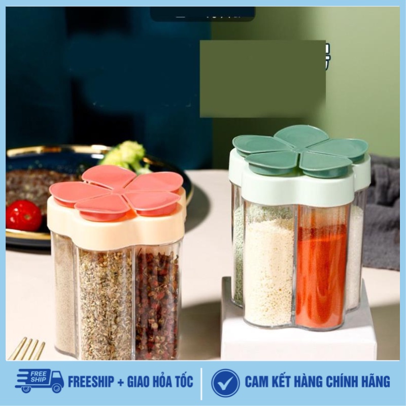 Hộp đựng gia vị 5 NGĂN HOA MAI đựng nhiều gia vị cùng lúc, hộp đựng gia vi đa năng thông minh nhiều ngăn tiện lợi