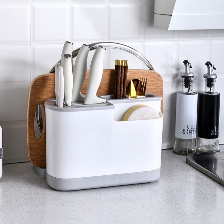 Kệ đựng dao kéo thớt muỗng nắp nồi nhà bếp ráo nước nhiều ngăn đa năng (V7)