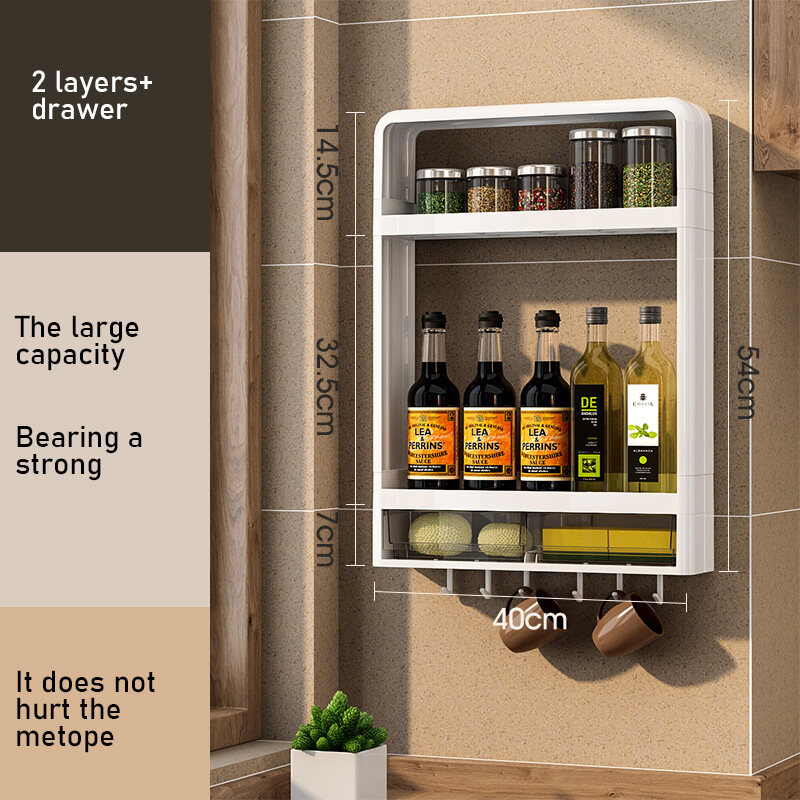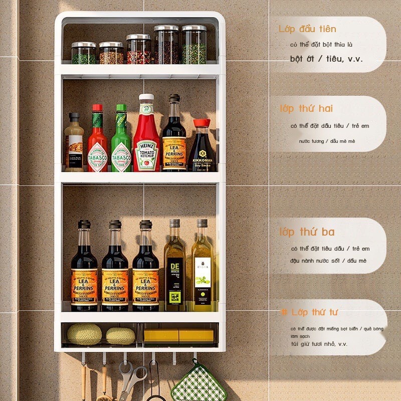Kệ Đựng Gia Vị, Mỹ Phẩm Treo Tường Không Khoan Đục, Kệ Để Đồ Nhà Bếp
