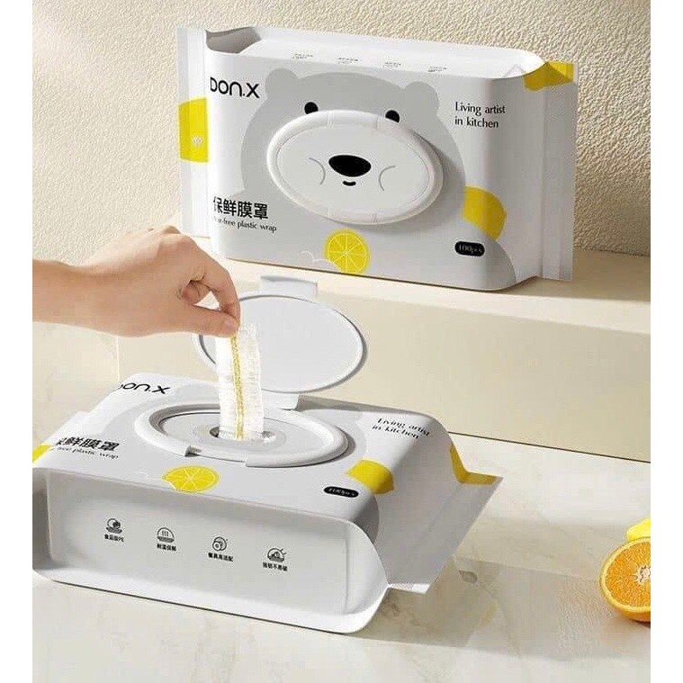 ✔️ 100 chiếc màng bọc thực phẩm được đóng gói kín từng gói. Mỗi gói có nắp đậy kín và nhãn dán niêm phong chống bụi, ẩm mốc an toàn tuyệt đối..Sẽ không xảy ra tình trạng màng bọc bị khô, dính nước, ẩm mốc như khi để trong túi hở thông thường