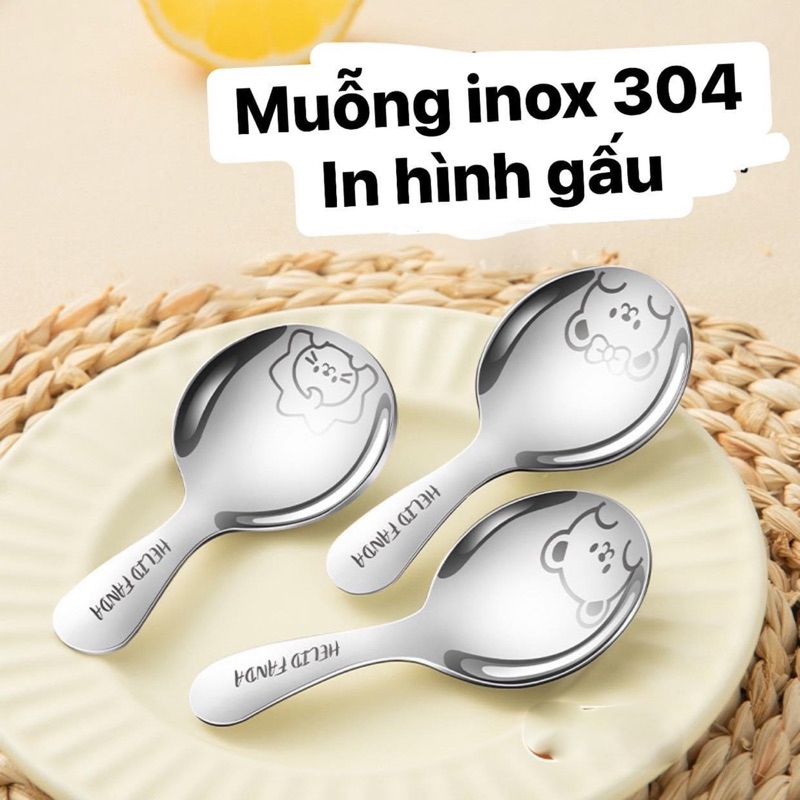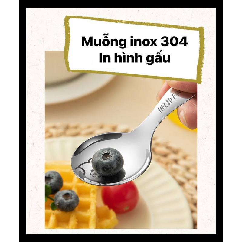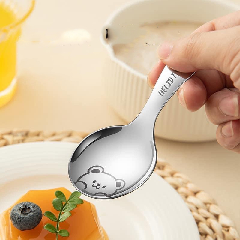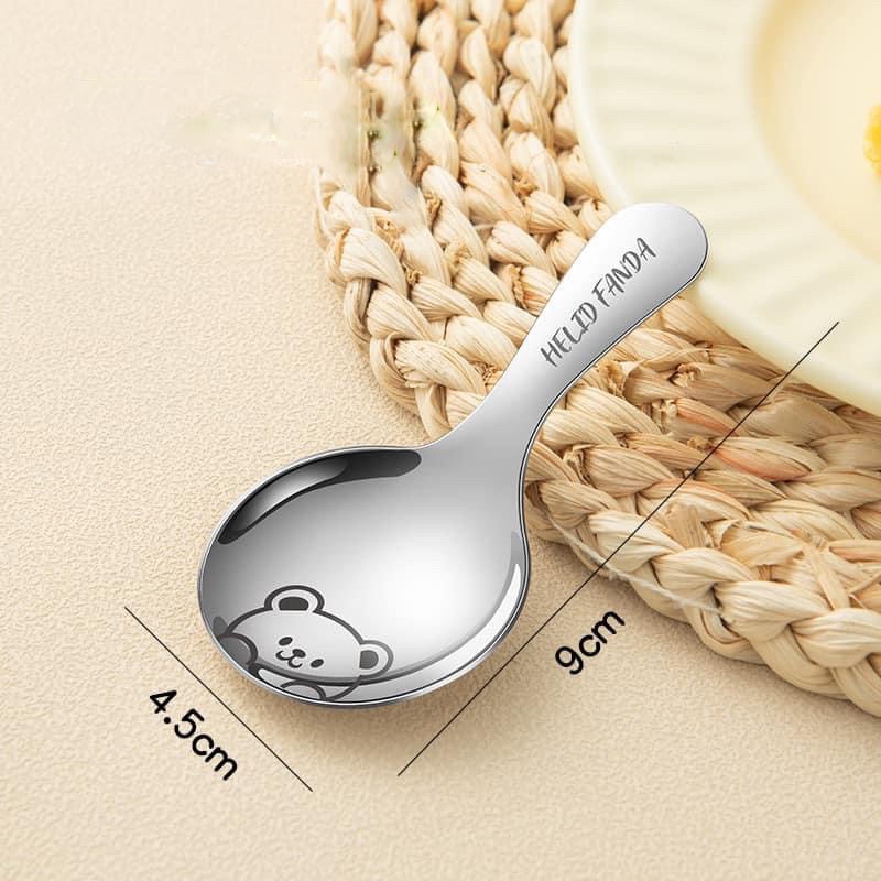 Muỗng gia vị, ăn dặm Inox 304 hàng dày In hình gấu dế thương (U33)