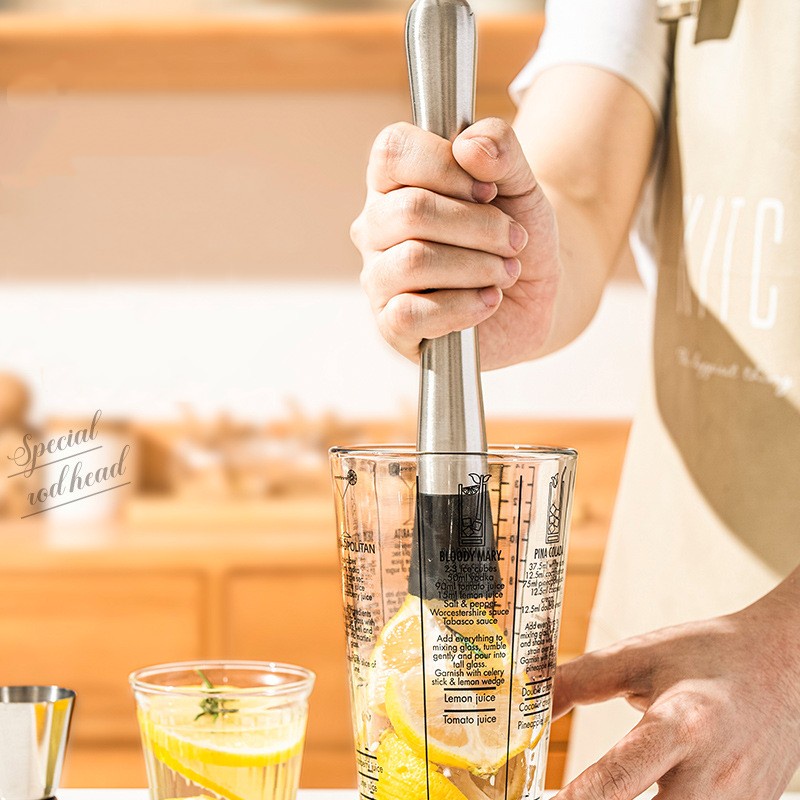 Chày Dầm Pha Chế Trà Chanh Giã Tay – Chày Bar, Chày Bar Inox Đầu Nhựa Cao Cấp 21cm