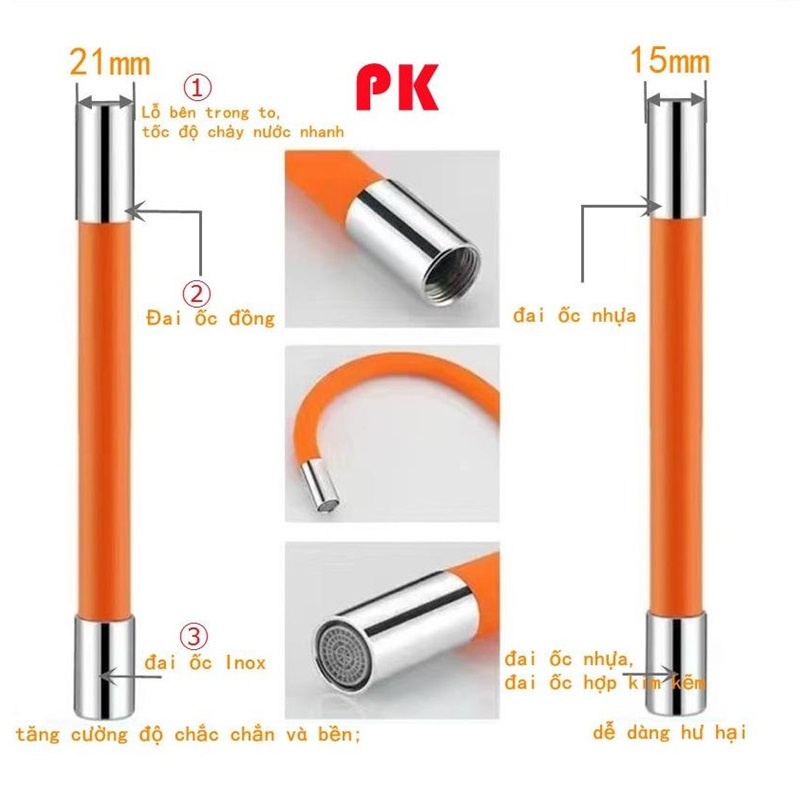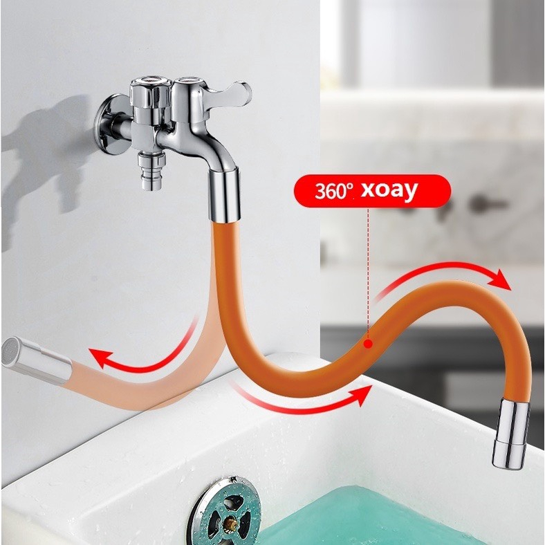 ống nối dài vòi nước phi 21mm linh hoạt có thể quay 720° theo mọi hướng, ống nước mở rộng silicone
