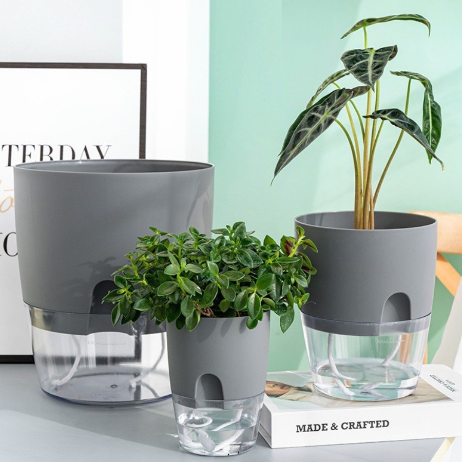 Chậu Trồng cây tự động tưới chậu thiết kế thông minh nhựa 2 lớp cao cấp để bàn văn phòng hiện đại