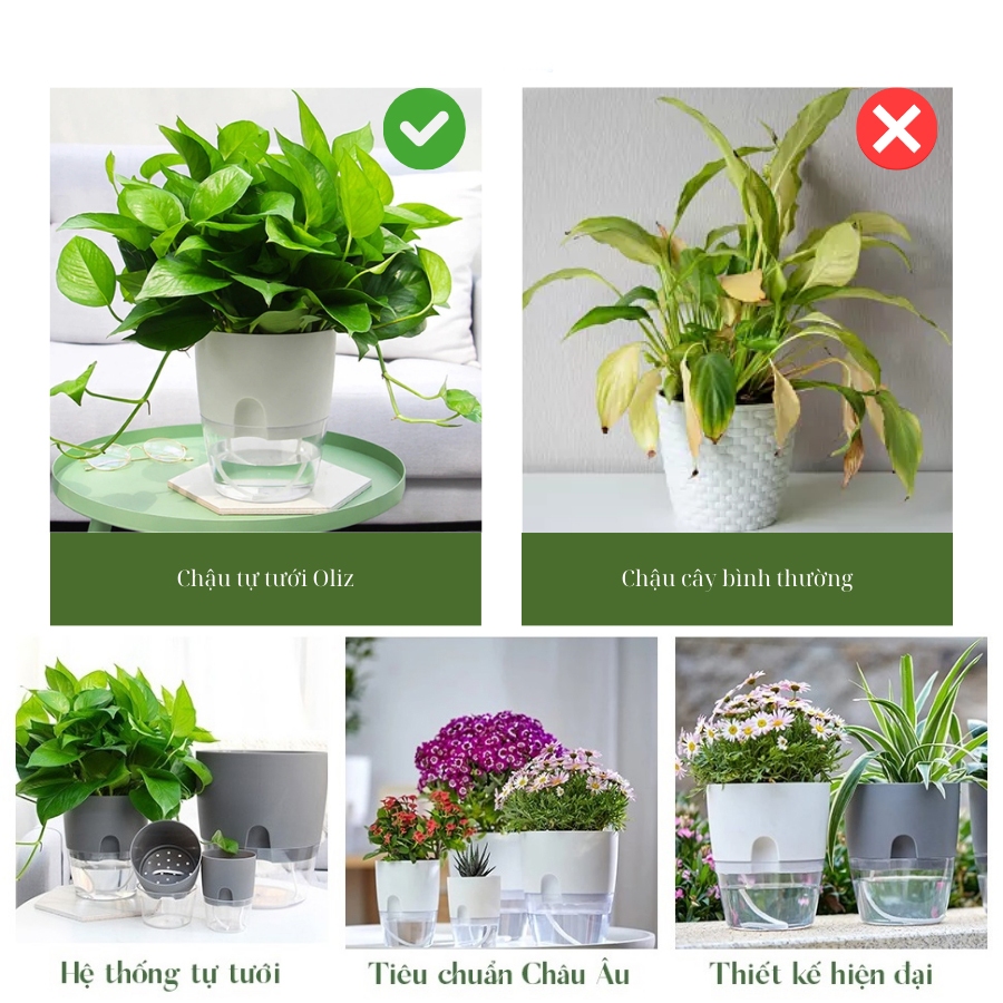 ☘ Thiết kế thông minh 2 lớp giúp chậu có khả năng tự tưới nước cho cây trong khoảng 7-30 ngày.