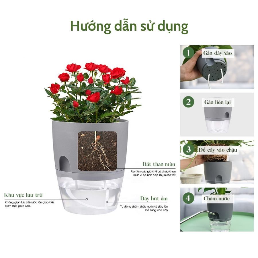 ☘ Chống ăn mòn, thoáng khí, dễ sử dụng, không lo nước tràn ra ngoài, khỏi cần dĩa lót.