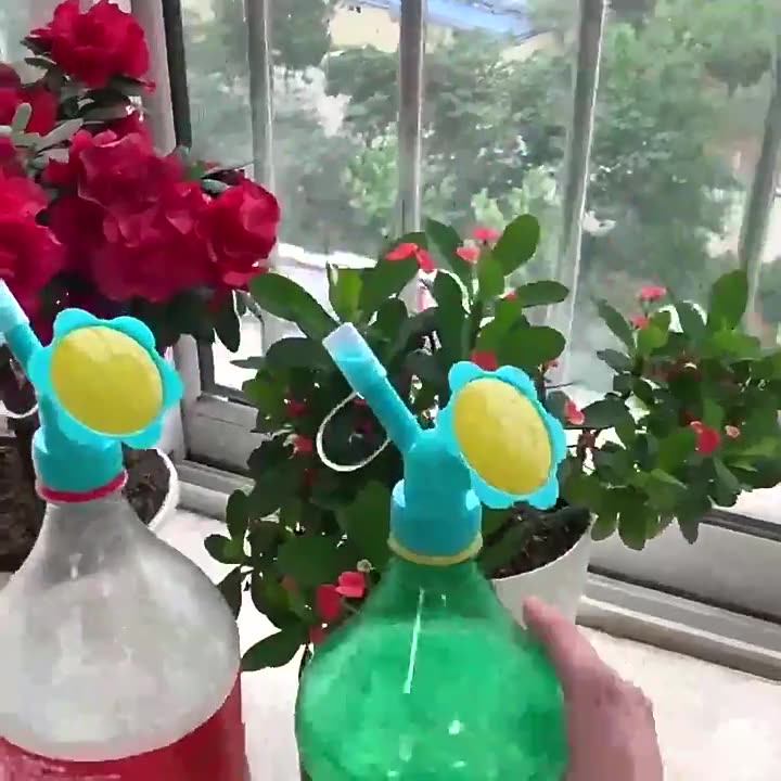 Dụng cụ tưới cây hình BÔNG HOA tưới cây cảnh làm vườn, Nắp nhựa có vòi gắn chai nước tưới cây tiện lợi