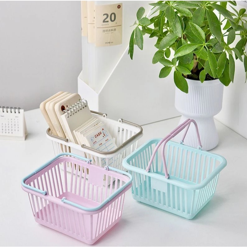 Hãy là người đầu tiên nhận xét “Giỏ nhựa đựng đồ có quai xách mini màu pastel ngọt ngào (G68)”