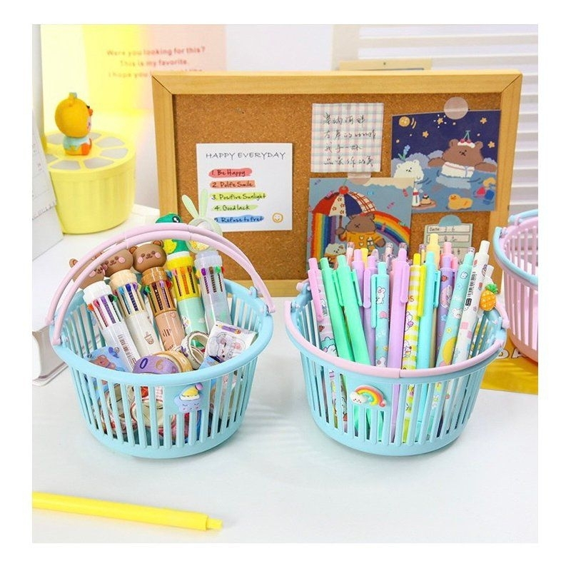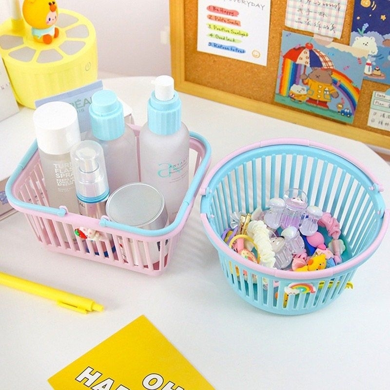Giỏ nhựa đựng đồ có quai xách mini màu pastel ngọt ngào (G68)