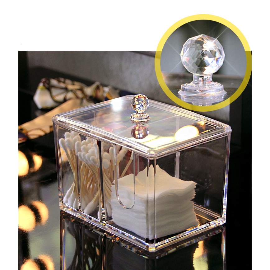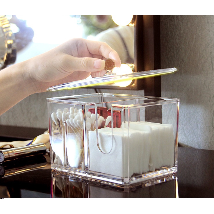 Hộp Đựng Tăm Bông, Bông Tẩy Trang Trong Suốt Trang Trí Bàn Trang Điểm