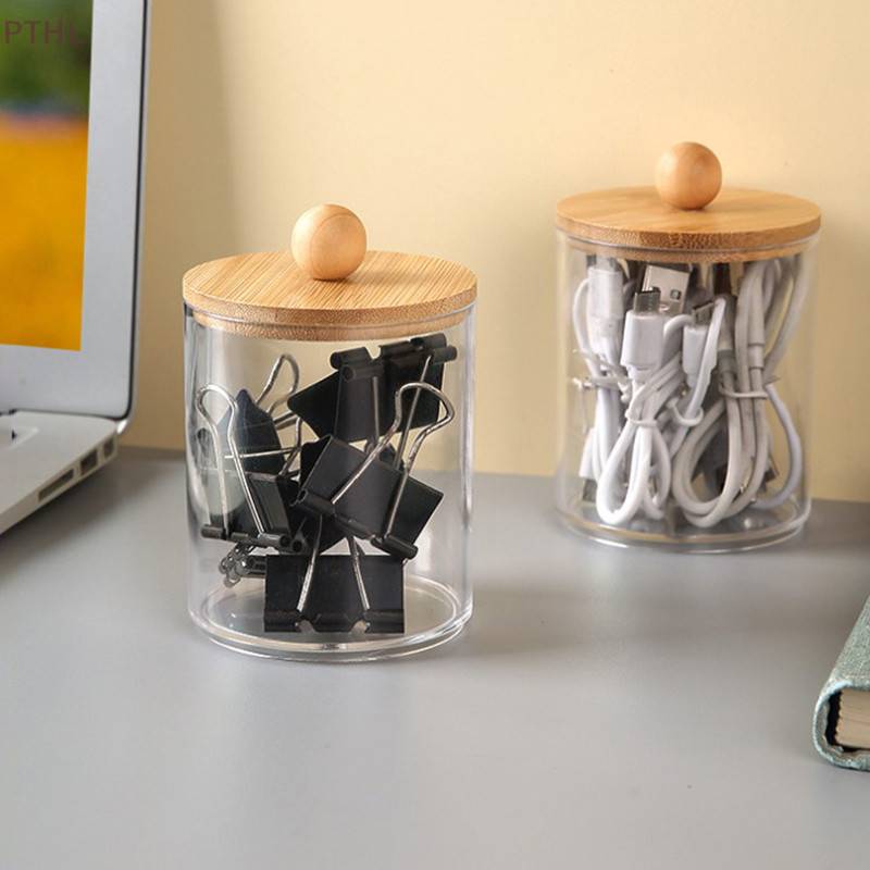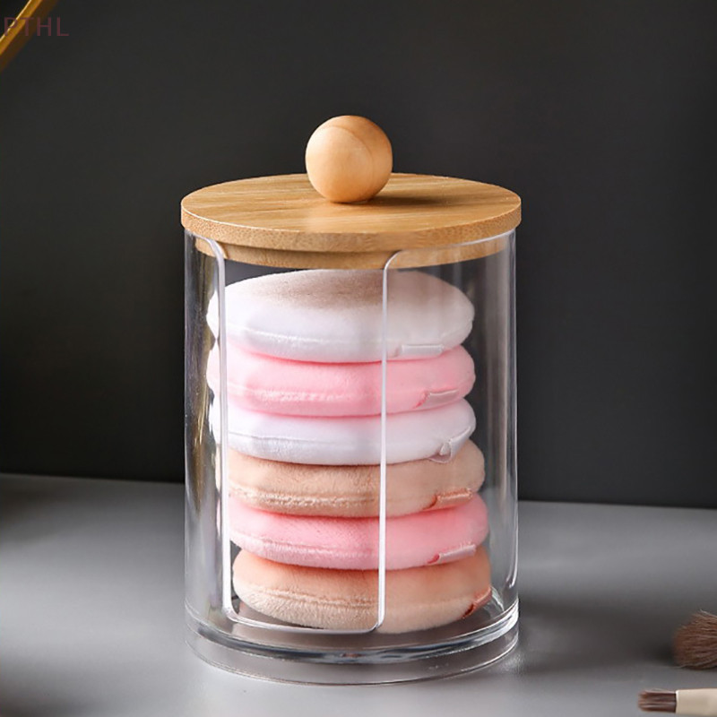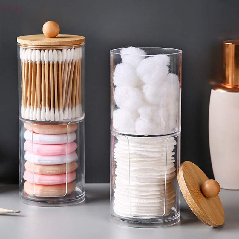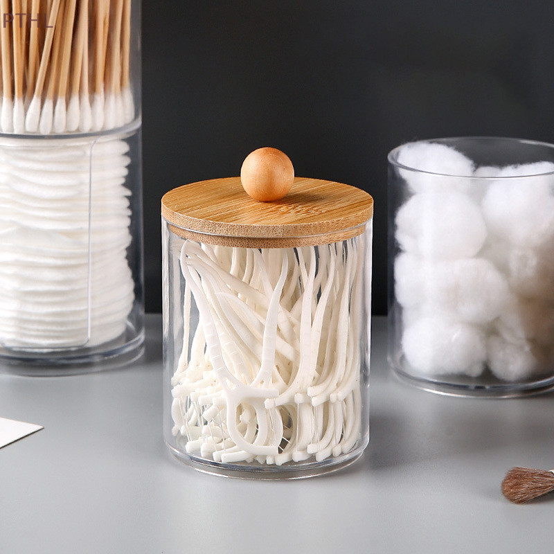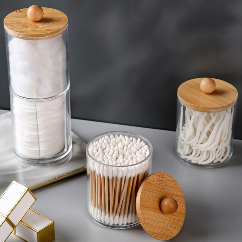 Hộp Đựng Tăm Bông (TB01), Bông Tẩy Trang nắp gỗ Chất Liệu Nhựa Acrylic Trong Suốt Sang Trọng