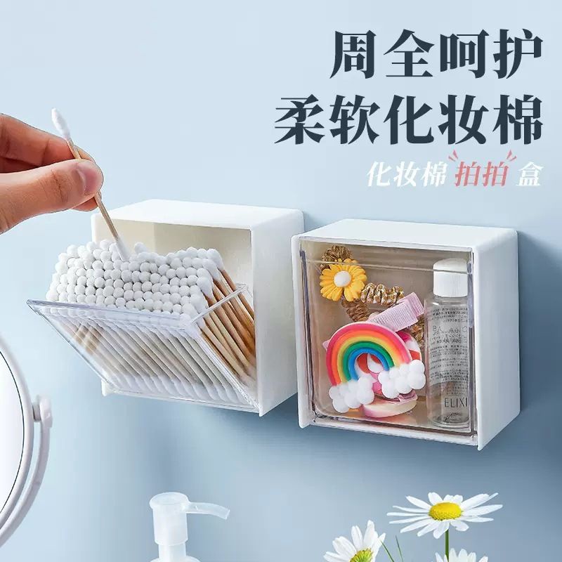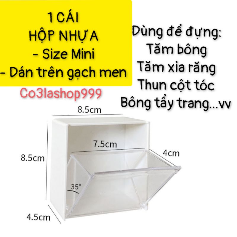 Hộp nhựa vuông (H13) dùng để đựng bông tẩy trang, tăm bông, xỉa răng, thun cột tóc, phụ kiện thiết kế mở dễ sử dụng