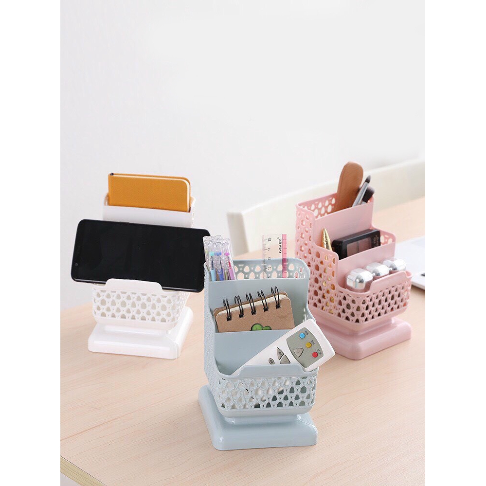 Khay Nhựa 3 Ngăn Đựng Đồ Trang Điểm, Hộp cắm bút, Giá Đỡ Điện Thoại Để Bàn Tiện Lợi