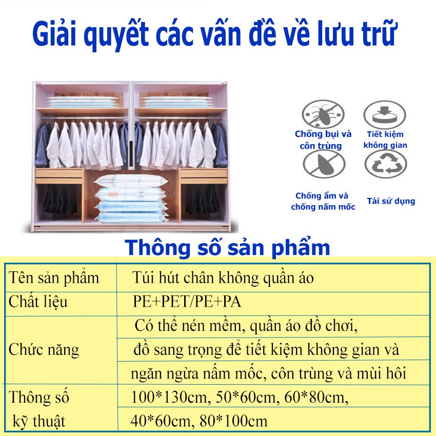 Túi hút chân không đựng quần áo, chăn gối chống ẩm, bụi tiết kiệm diện tích