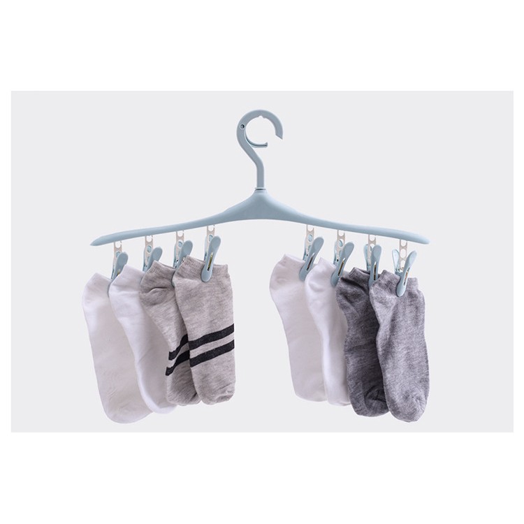 Đây là loại móc treo quần áo có 8 kẹp giúp bạn có thể treo nhiều đồ như tất, quần áo sơ sinh, trẻ con, đồ lót,…