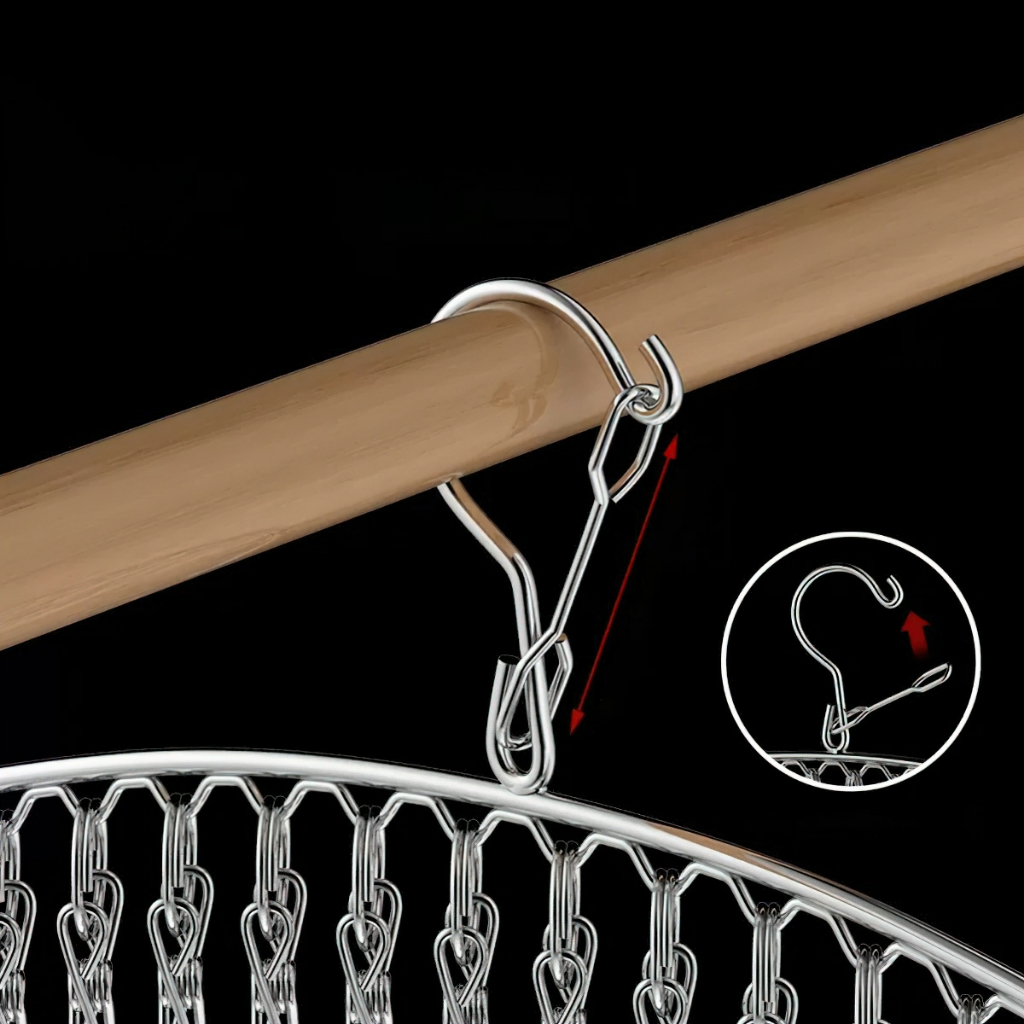 – Có khóa gài chắc chắn; đảm bảo không rớt móc dù có gió lớn. Kẹp bằng chất liệu inox cực kì chắc chắn, đảm bảo đồ không bị rơi tuột trong quá trình phơi.