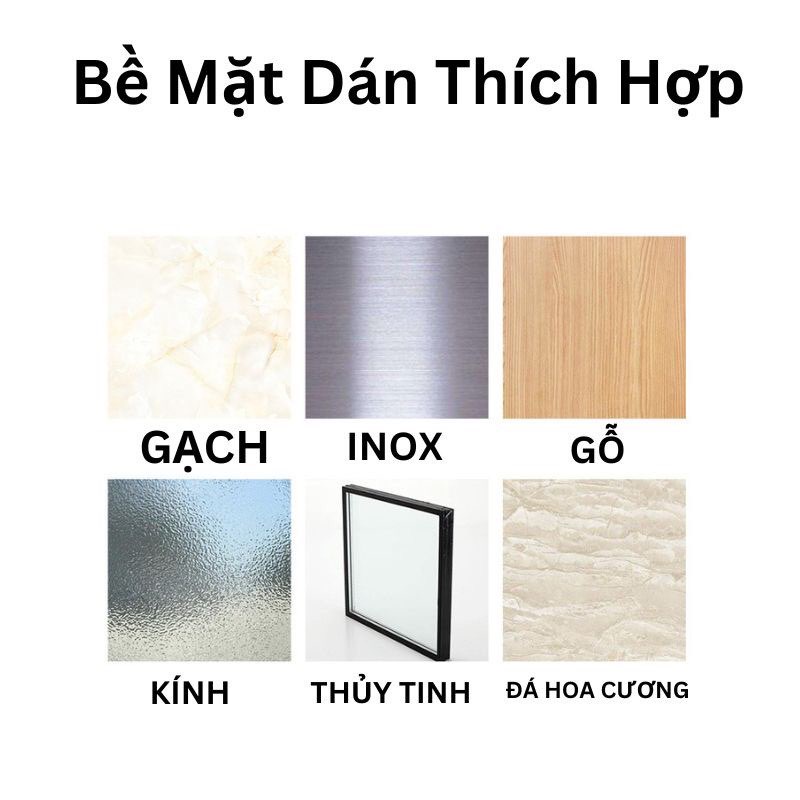 – Phù hợp bề mặt dán: Kính, Gạch Men, Gỗ nhẵn