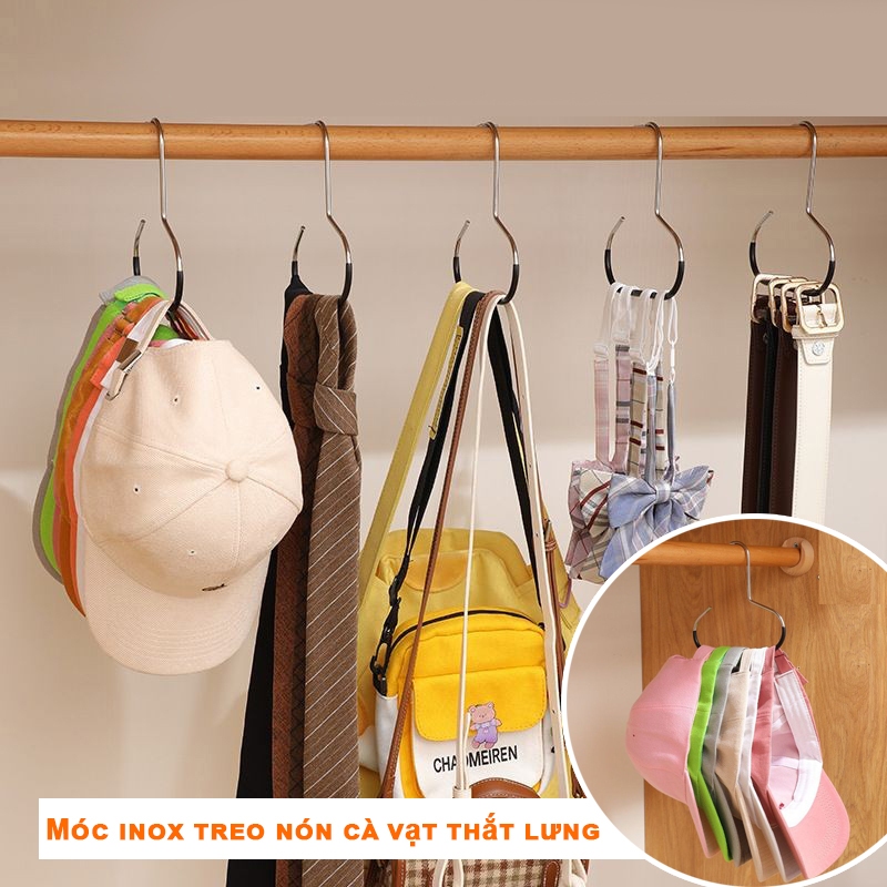 Móc inox treo nón cà vạt thắt lưng đa năng tiện lợi 14x15cm