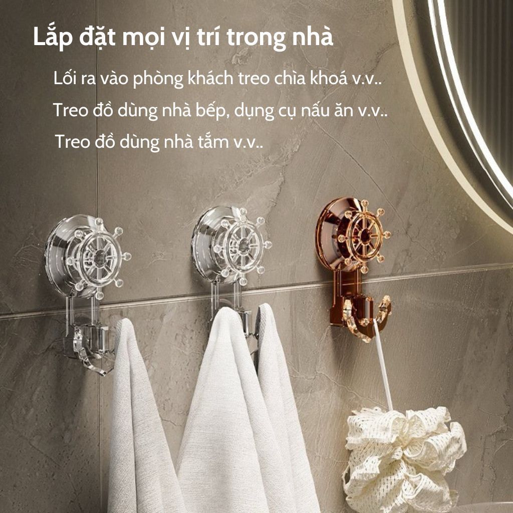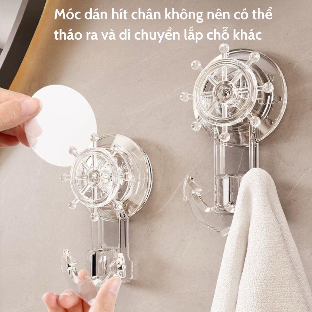 Móc treo đồ dán tường hít chân không MỎ NEO, Móc treo chịu lực lắp đặt không cần khoan tường