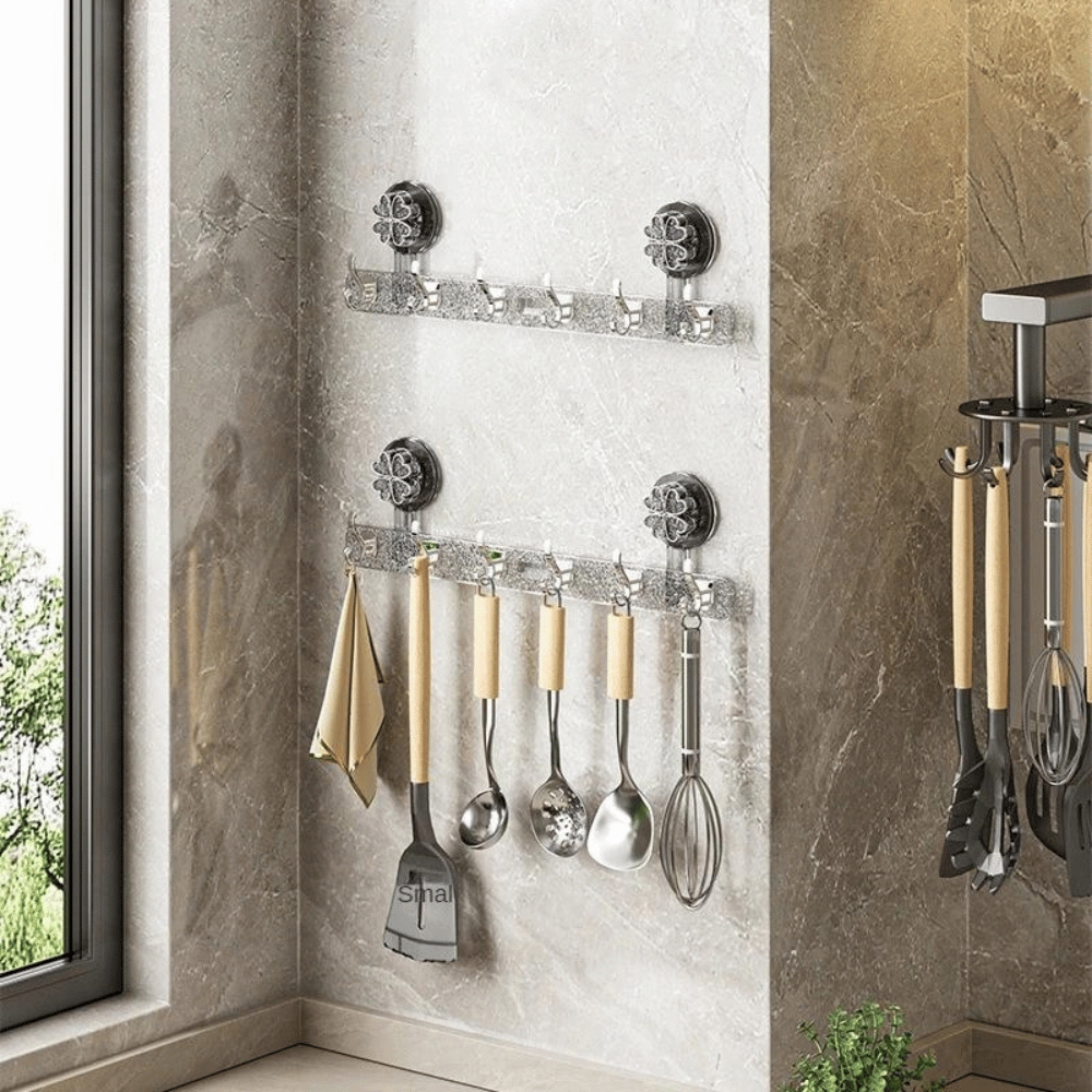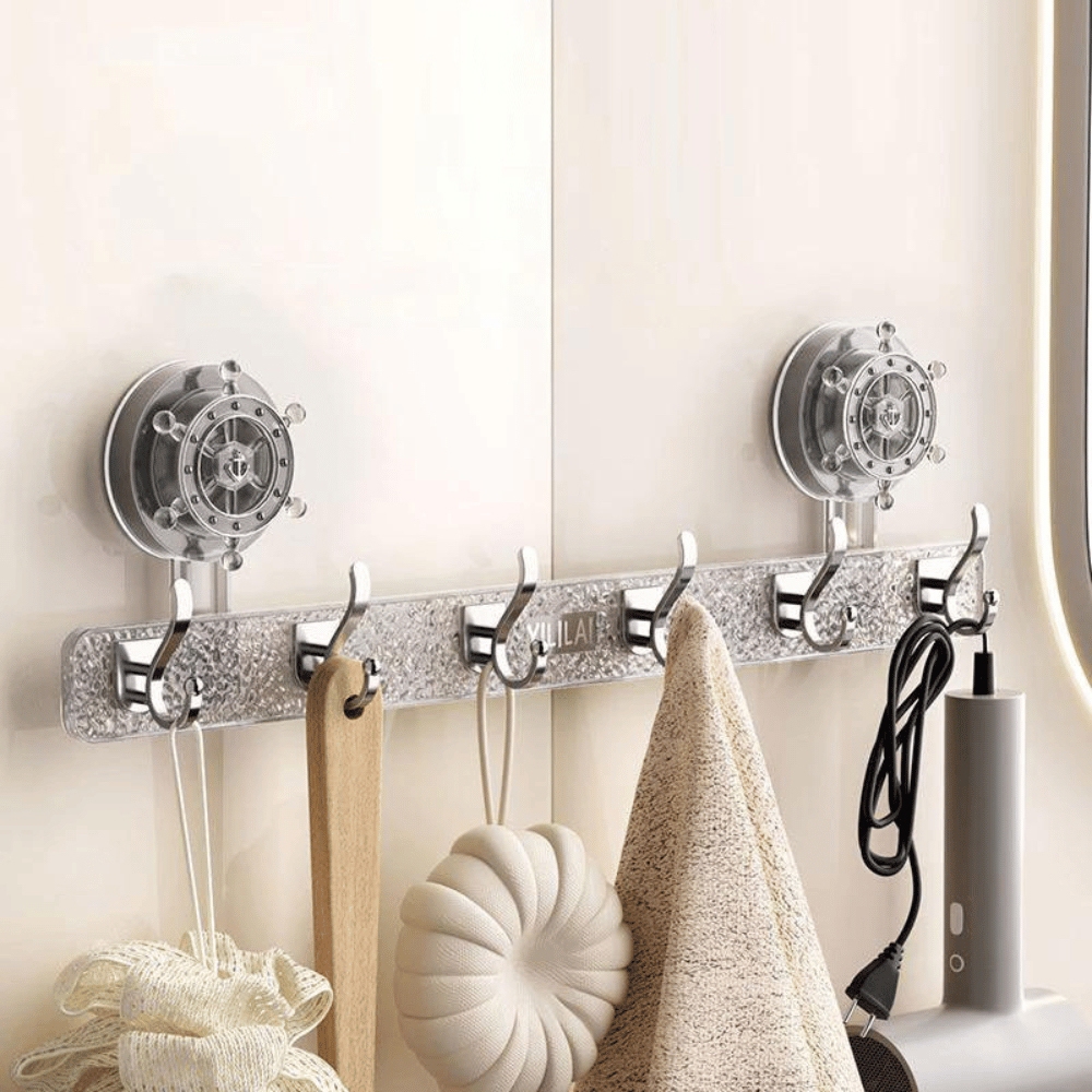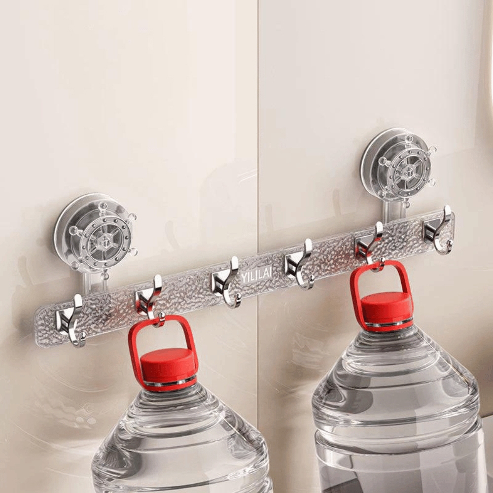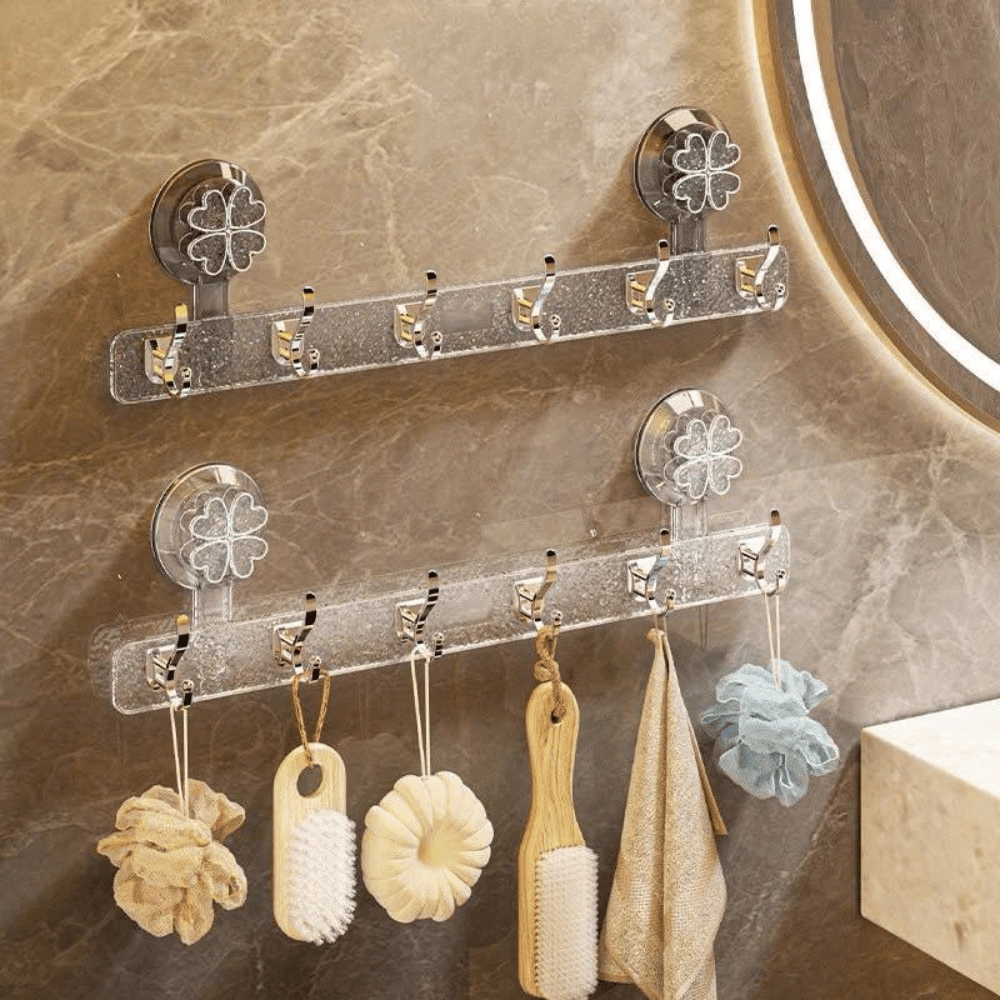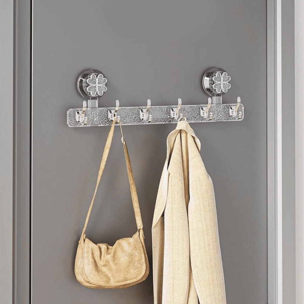Thanh Kệ Móc Treo Quần Áo Trong Suốt Hít Tường 6 MÓC HOA MAI- Móc Treo Đồ Nhà Tắm Dạng Hút Chân Không