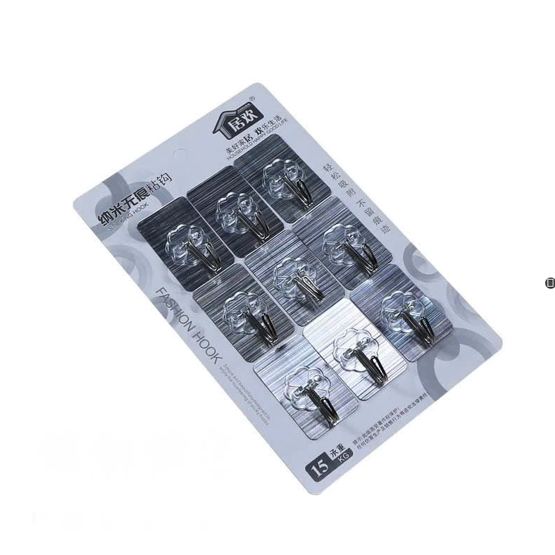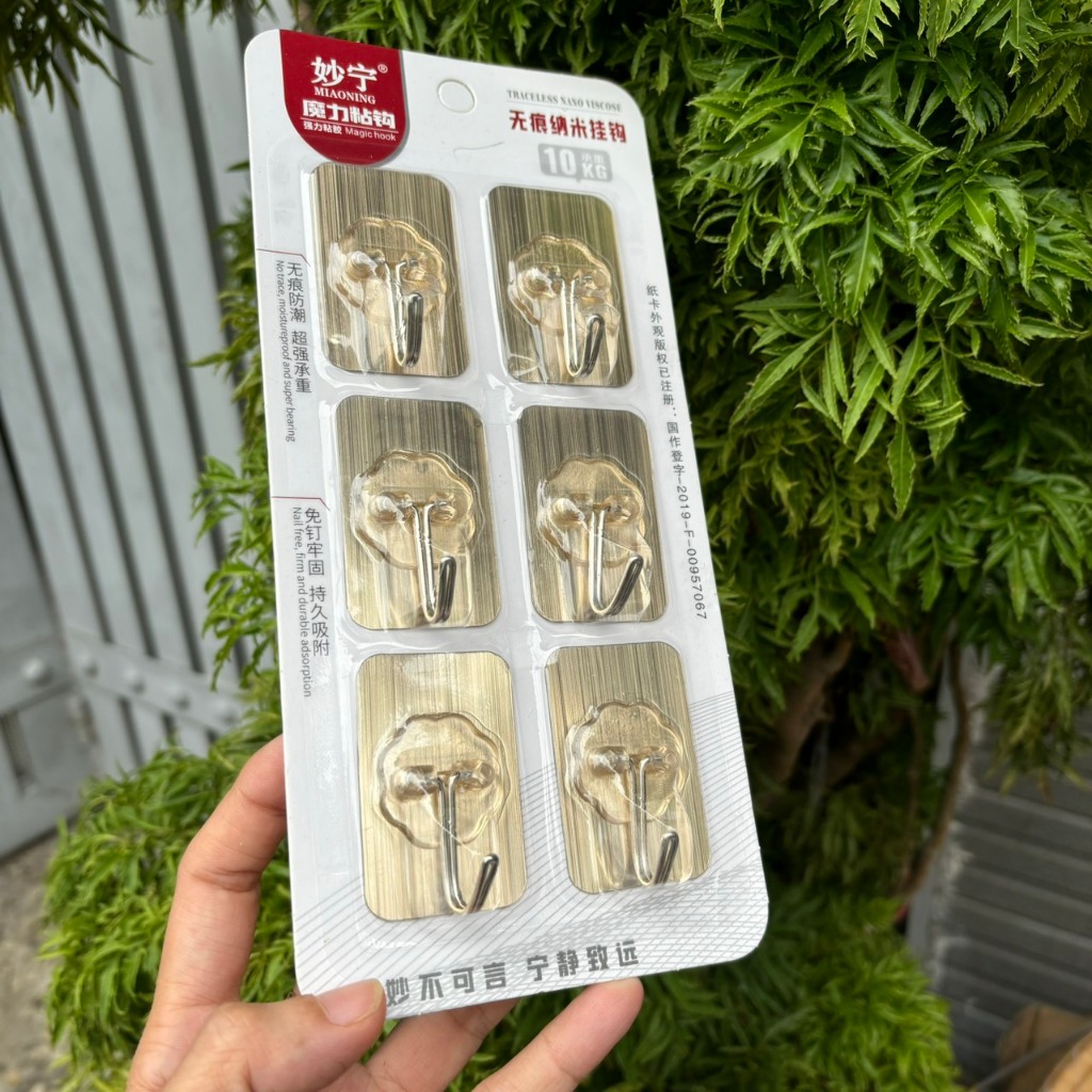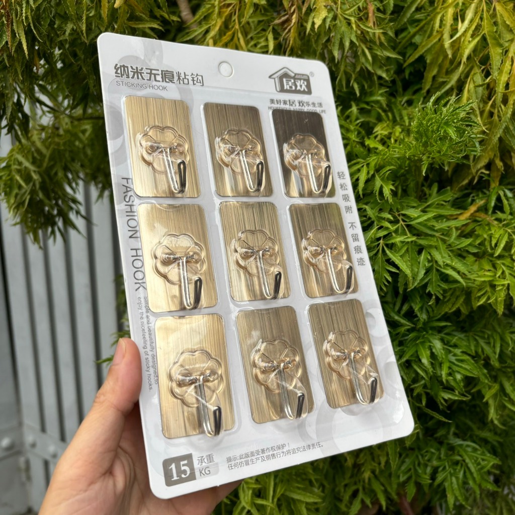 Vỉ 9 móc dán tường tráng bạc cường lực siêu dính chắc chắn
