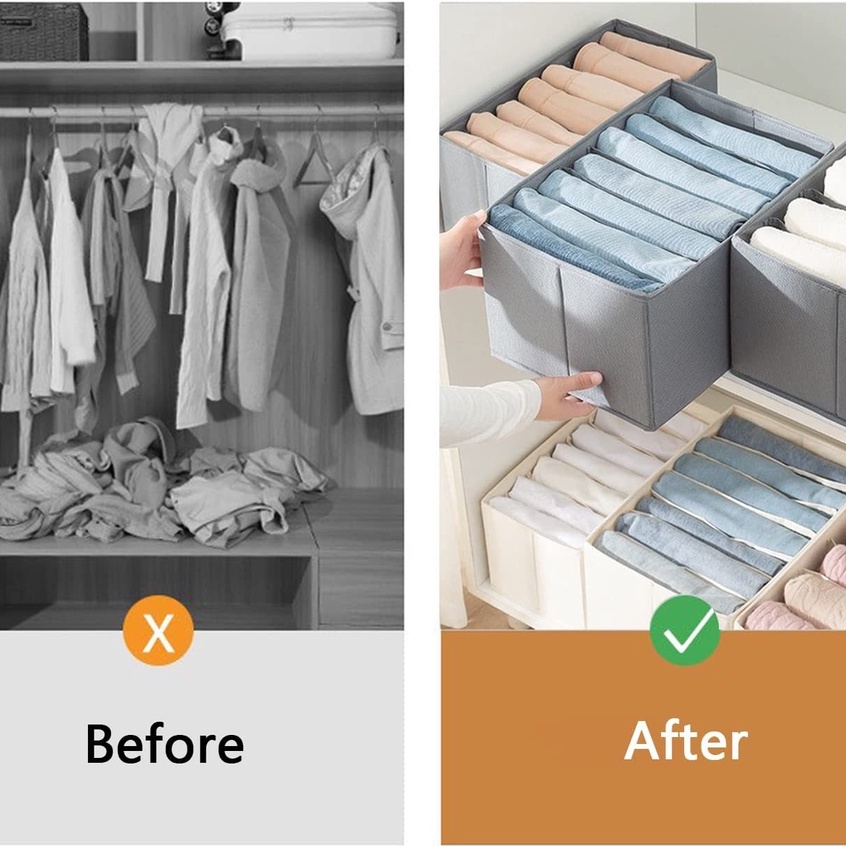 – Hộp đựng quần áo 7 NGĂN có QUAI, túi vải chia ngăn đựng đồ thay thế móc treo đồ gọn gàng
