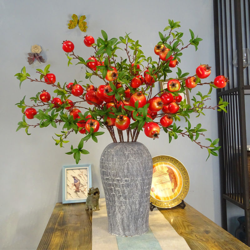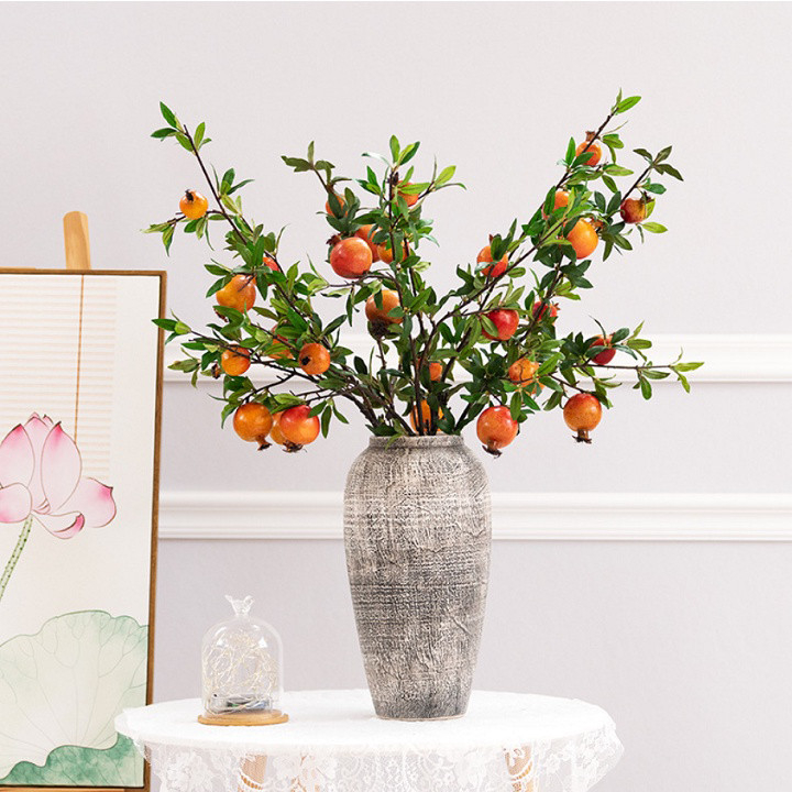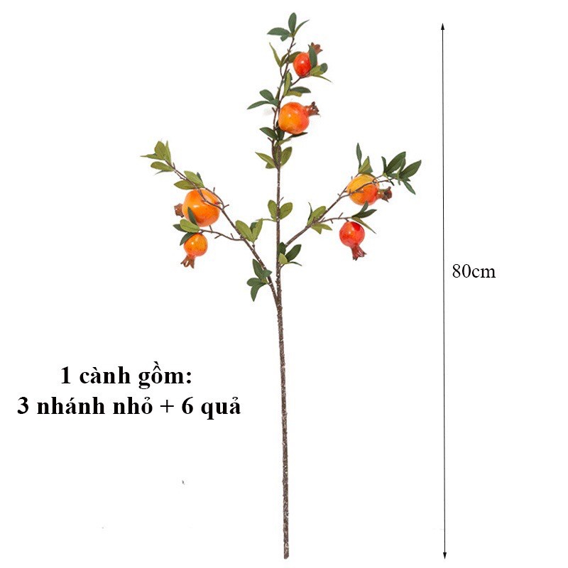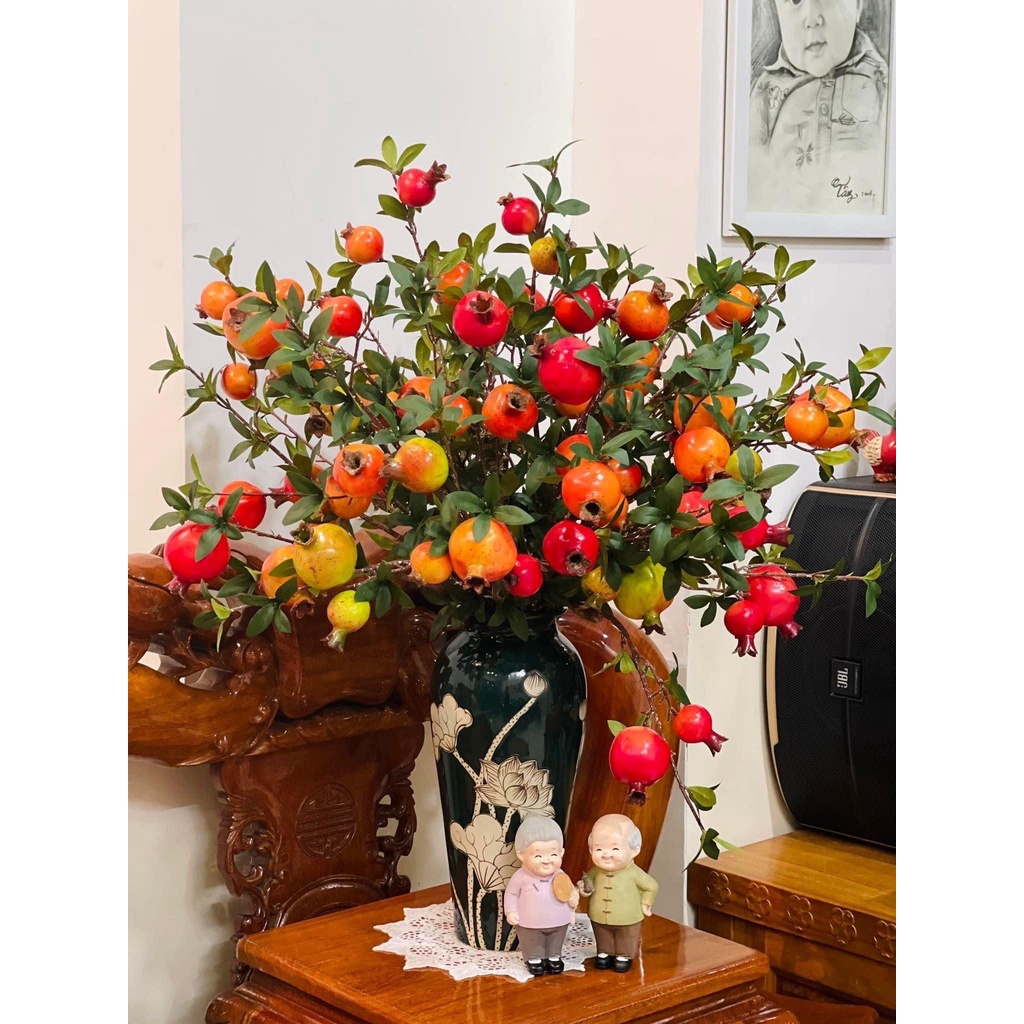 Cành Lựu 6 Quả trang trí nhà cửa quả lớn màu cam đỏ chín trang trí nhà cửa sang trọng, may mắn, tài lộc