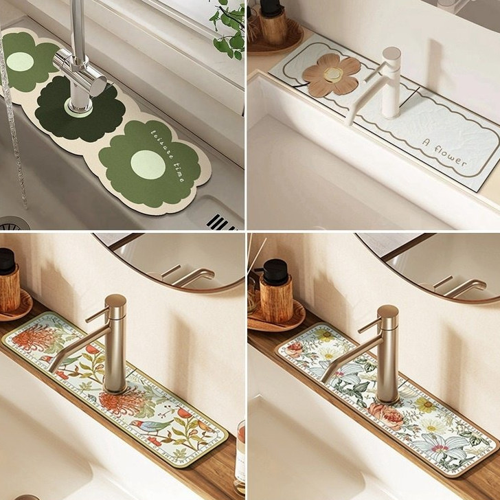 Miếng Thảm Thấm Hút Nước Lót Vòi Nước Nhà Bếp/Phòng Tắm Thấm cực nhanh, hoạ tiết sang trọng