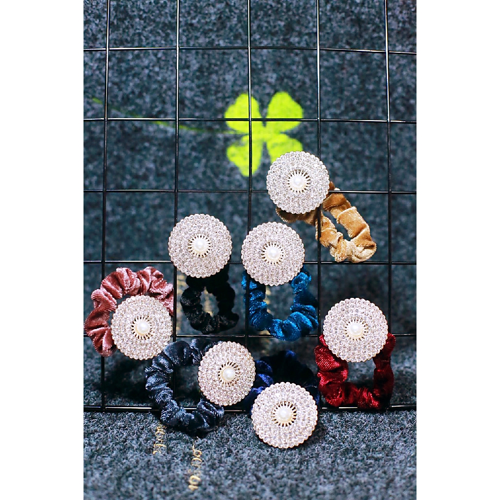 Buộc Tóc Dây Nhung Đính Đá Bông Hoa Sang Trọng