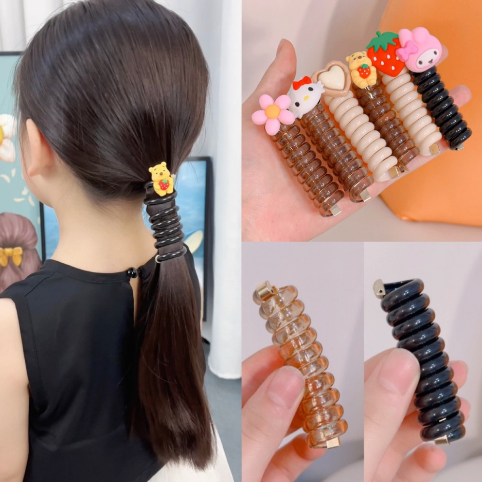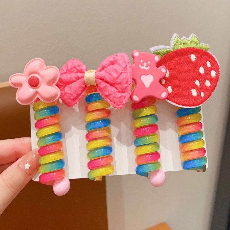 Chun buộc tóc tóc dạng lò xo XOẮN TẠO HÌNH TÓC màu cầu vồng có đính hoa,Nơ dễ thương cho bé