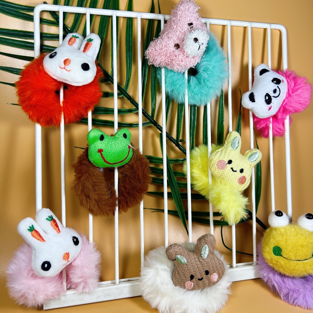 Dây Buộc Tóc Lông Mềm Đính Thú Bông Siêu Kute