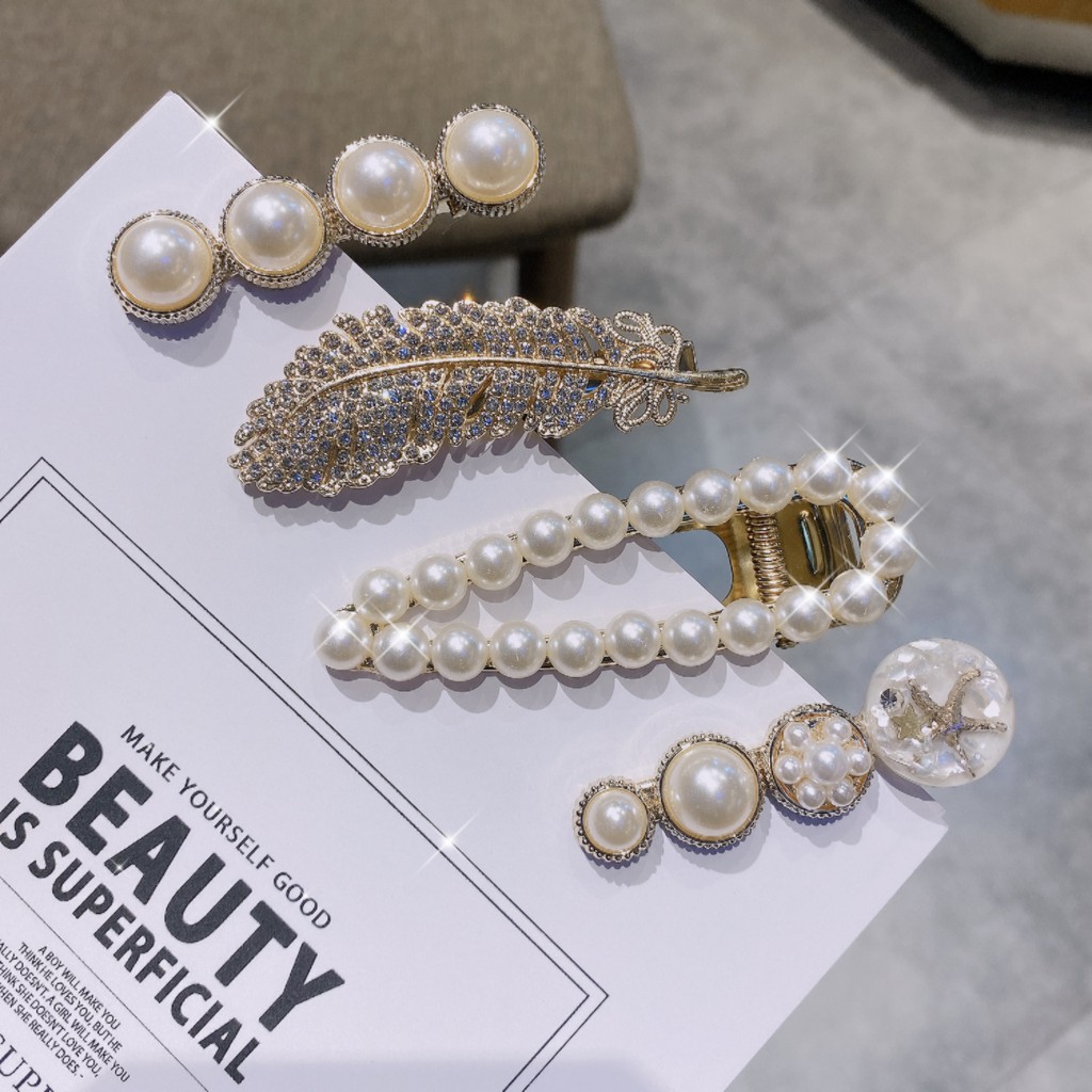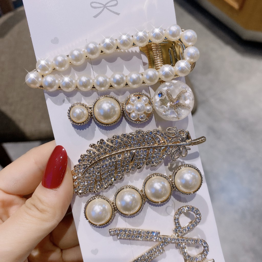 Set 6 Kẹp Tóc Kim Loại Đính Ngọc Nhân Tạo Siêu Sang Trọng Cho Bạn Nữ