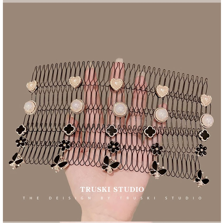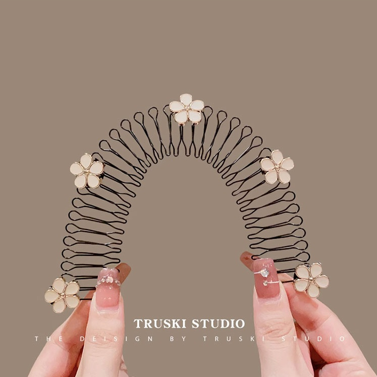 Xược Cài Tóc Vô Hình chuốt tóc con Đính Đá Cườm Hoa Ngọc Siêu Xinh
