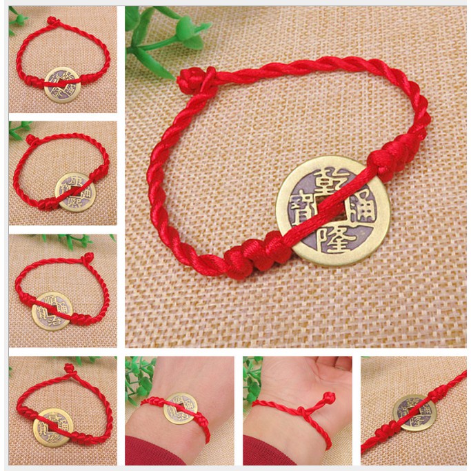 Vòng Tay tết Chỉ Đỏ Dây Rút Tiền Đồng Xu Mang Lại May Mắn Tiền Tài