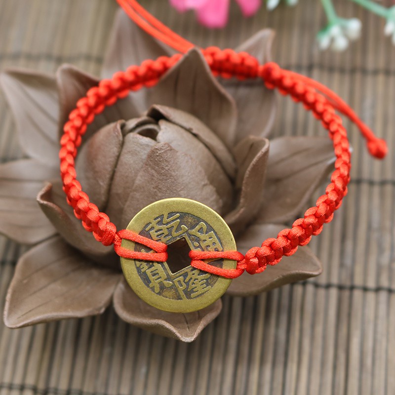 Vòng tay Tết Đồng Xu May Mắn- Dây Chỉ Đỏ Tết Đồng Xu Tài Lộc