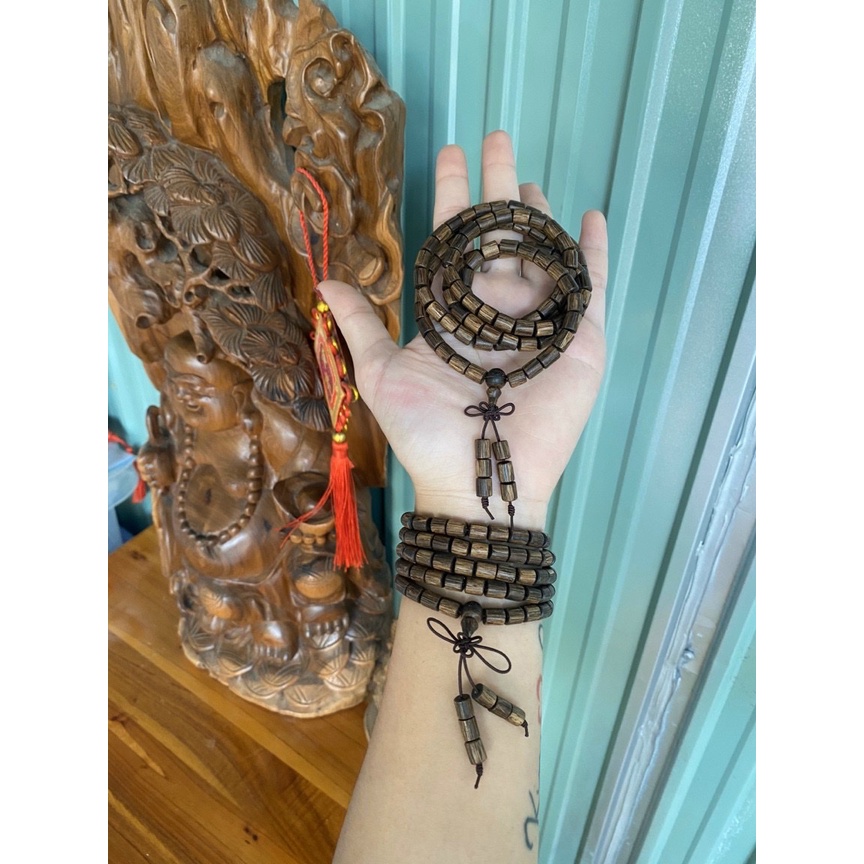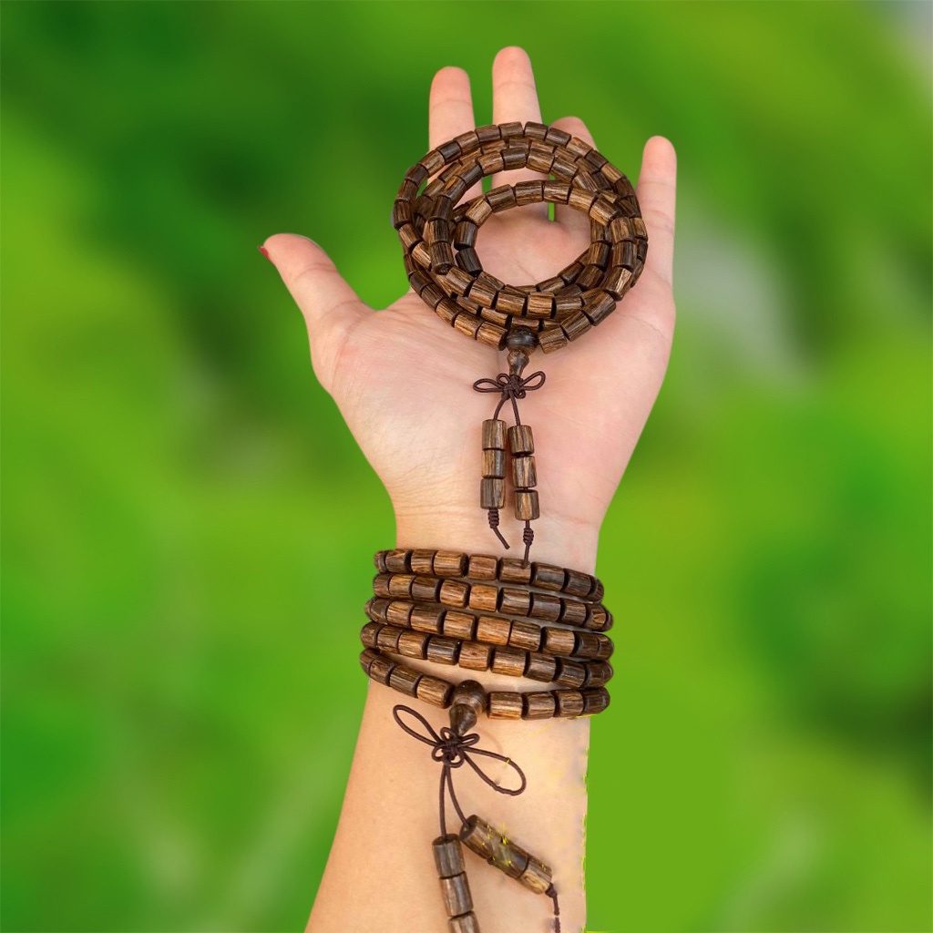 Vòng tay chuỗi hạt (T16) gỗ vân mun đeo tay, đeo cổ chuỗi tràng hạt 108 phong thủy may mắn