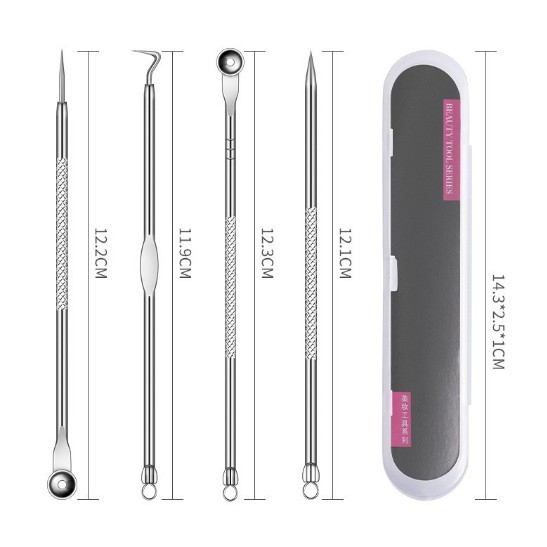 Bộ cây nặn mụn 4 cây 8 đầu thép không ghỉ đa năng tiện lợi nhỏ gọn